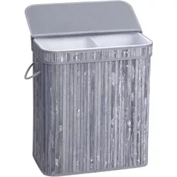 Szary kosz na pranie | Bambusowy pojemnik na zabawki | Drewniany kosz na ubrania | Dwukomorowy kosz na bieliznę do łazienki | RYL-100L-GREY